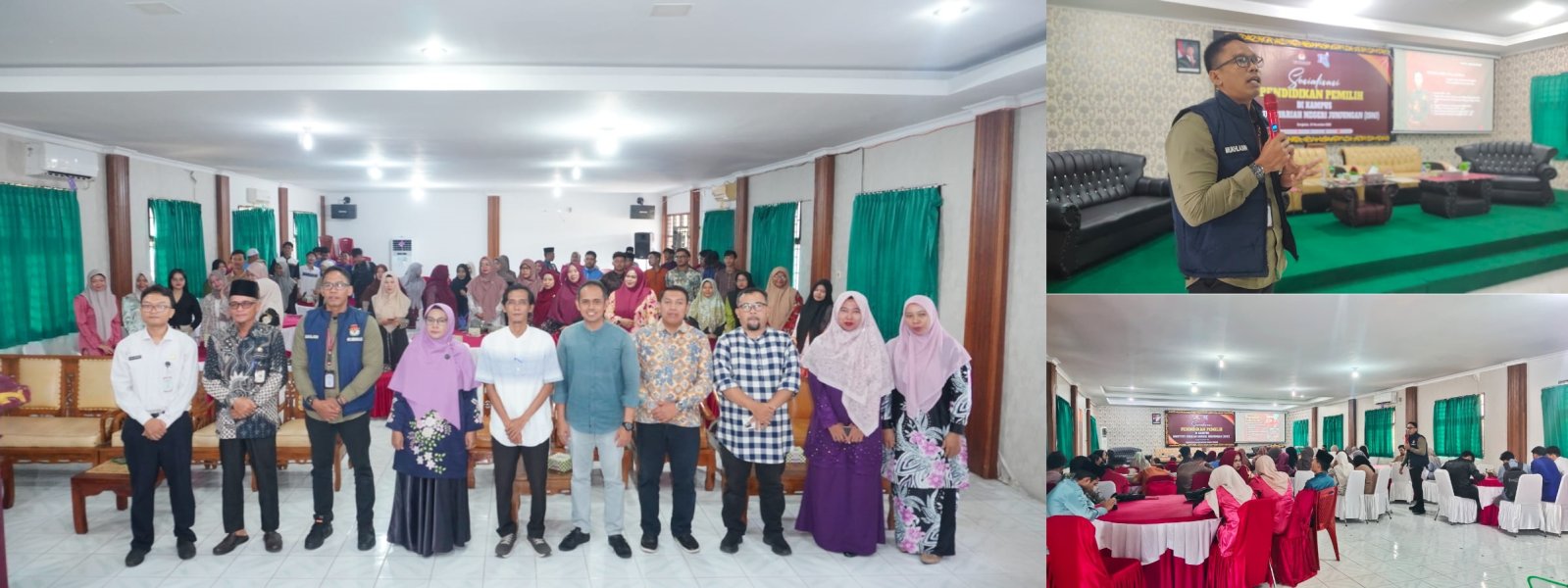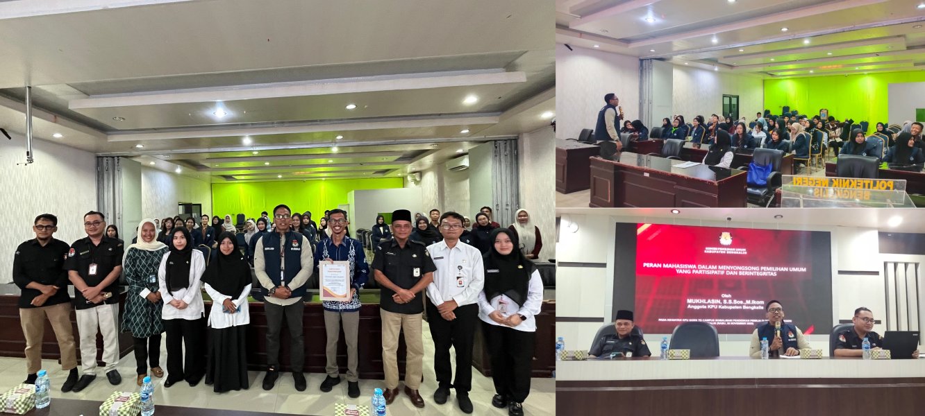 Bengkalis — KPU Kabupaten Bengkalis melaksanakan kegiatan Sosialisasi Pendidikan Pemilih di Kampus Politeknik Negeri Bengkalis pada Rabu (26/11/2025). Kegiatan ini merupakan bagian dari upaya KPU dalam meningkatkan literasi kepemiluan bagi kalangan mahasiswa sebagai kelompok strategis dalam mewujudkan pemilu yang partisipatif dan berintegritas. Hadir sebagai narasumber, Mukhlasin, Anggota KPU Kabupaten Bengkalis Divisi Sosialisasi, Pendidikan Pemilih, Partisipasi Masyarakat, dan SDM. Dalam penyampaiannya, Mukhlasin menekankan pentingnya peran mahasiswa sebagai agen perubahan dalam memperkuat demokrasi. Ia juga menjelaskan berbagai hal terkait kepemiluan, mulai dari dasar hukum Pemilu, pentingnya partisipasi masyarakat, hingga peran generasi muda dalam menjaga integritas Pemilu dan Pilkada. Kegiatan dibuka oleh Ir. Marhadi Sastra, S.T., M.Sc, Wakil Direktur III Bidang Kemahasiswaan dan Kerja Sama Politeknik Negeri Bengkalis. Sosialisasi ini diikuti oleh 50 orang mahasiswa dan mahasiswi dari berbagai jurusan. Para peserta terlihat antusias mengikuti pemaparan serta berdiskusi mengenai isu-isu kepemiluan, hak politik warga negara, hingga urgensi meningkatkan partisipasi dalam Pemilu dan Pilkada ke depan. Melalui kegiatan ini, KPU Kabupaten Bengkalis berharap wawasan kepemiluan di kalangan mahasiswa semakin meningkat, sehingga mereka mampu menjadi pelopor dalam menyebarkan informasi yang benar tentang Pemilu serta mendorong partisipasi masyarakat secara lebih luas. #kpubengkalis #kpumelayani
