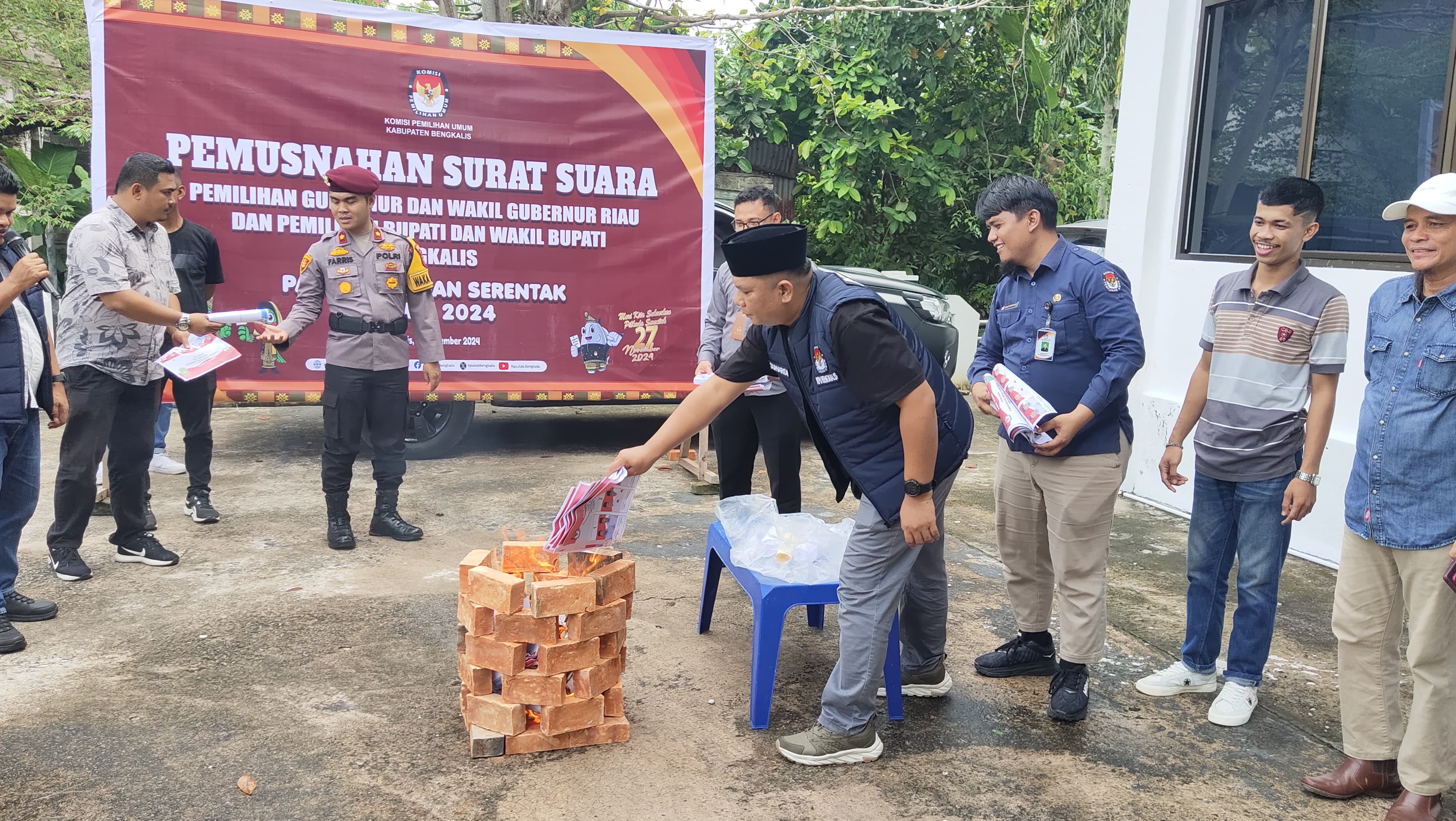 KPU Bengkalis - Komisi Pemilihan Umum (KPU) Kabupaten Bengkalis memusnahkan urat suara yang berlebih atau sisa. Pemusnahan surat suara ini dilakukan di Halaman Kantor KPU Kabupaten Bengkalis di Jalan Pertanian Bengkalis pada Selasa (26/11/2024) pagi.