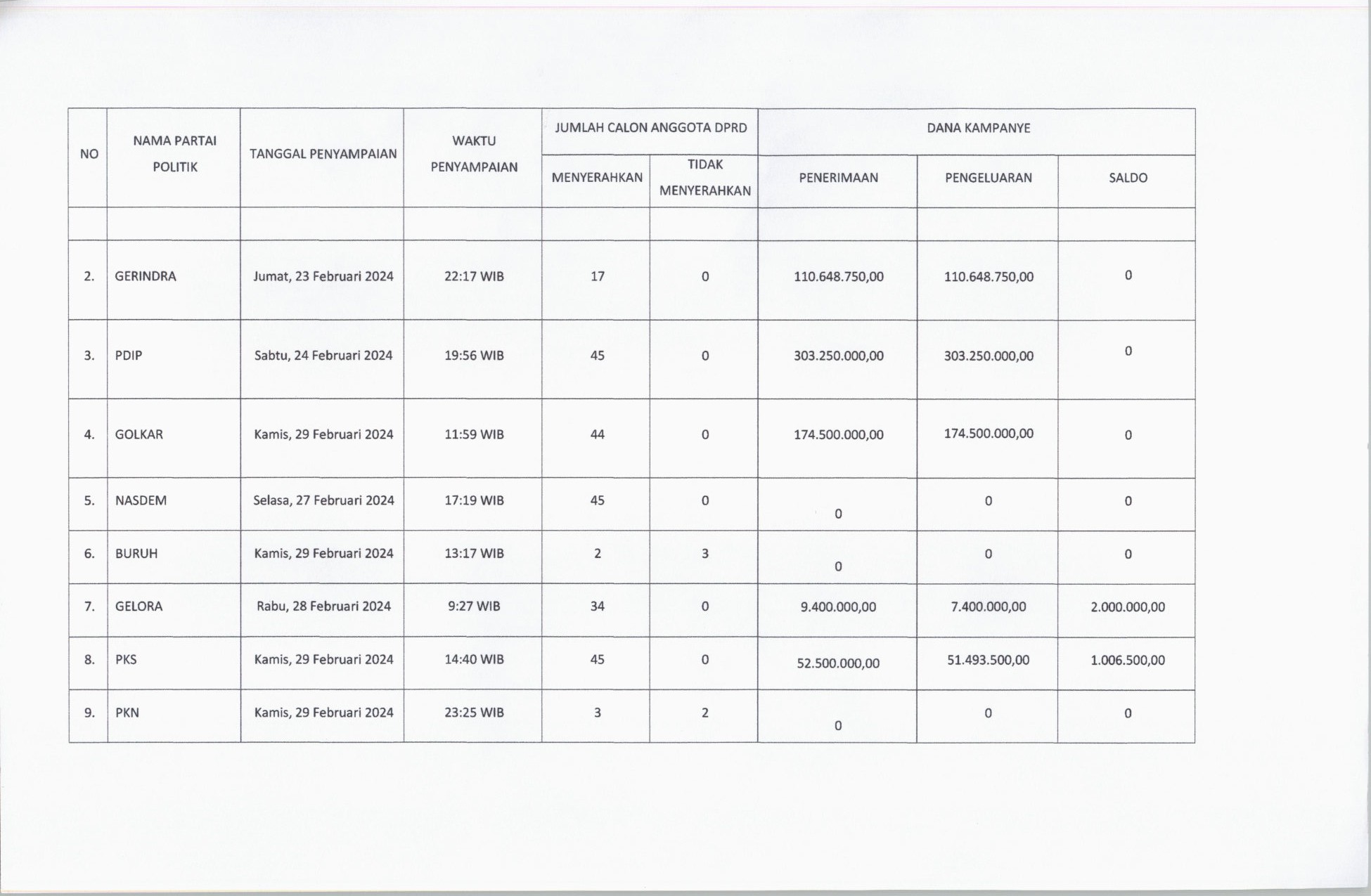 Pengumuman Hasil Audit Laporan Dana Kampanye Peserta Pemilihan Umum Tahun 2024 Jumat, 05 April 2024 00:00 988 DOWNLOAD FILE Bagikan: Telah dilihat 988 kali