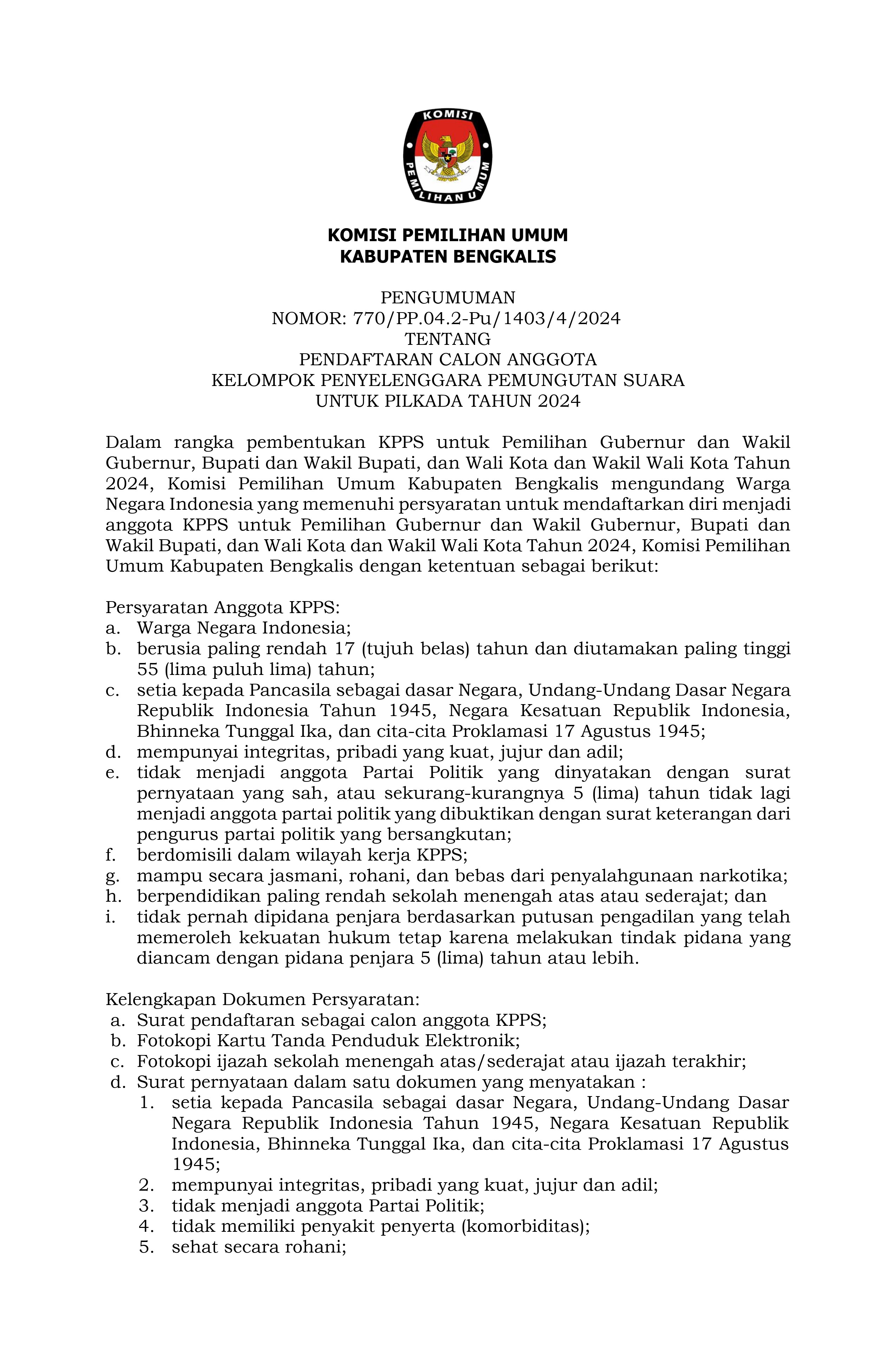 PENGUMUMAN PENDAFTARAN CALON ANGGOTA KELOMPOK PENYELENGGARA PEMUNGUTAN SUARA UNTUK PILKADA TAHUN 2024