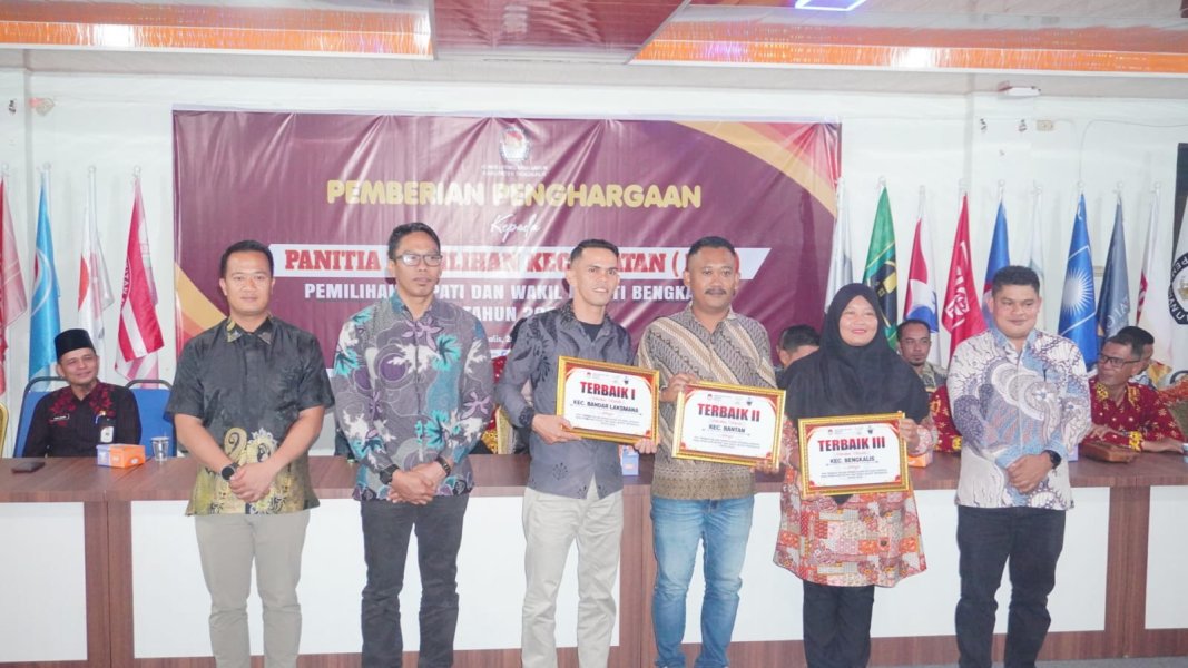 1.PPK Terbaik dalam pengelolaan Aplikasi Sirekap pada Pemilihan Bupati dan Wakil Bupati Bengkalis Tahun 2024 : Terbaik I : Kec. Banlak; Terbaik II : Kec. Bantan ; Terbaik III : Kec. Bengkalis