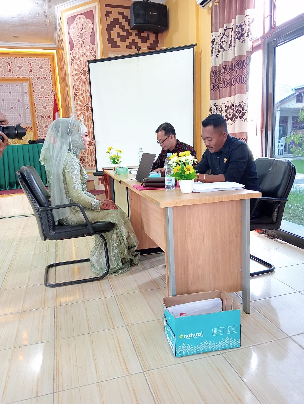 #TemanPemilih Nursyaidah seorang mempelai wanita warga desa Kembung Luar Kecamatan Bantan Kabupaten Bengkalis rela tiinggalkan resepsi pernikahannya hanya demi ikut tes wawancara sebagai Panitia Pemungutan Suara (PPS) untuk Pemilu 2024 pada Kamis (19/1/2023). Dia mendatangi lokasi tes wawancara masih berpakaian pengantin. Nursyaidah mengatakan, dirinya meninggalkan acara resepsi pernikahannya untuk mengikuti tes wawancara, agar lolos menjadi anggota PPS Desa Kembung Luar. "setelah izin suami dan keluarga besar, Saya datang dan menyempatkan diri ke kantor camat untuk tes wawancara PPS.," ungkap Nursyaidah. Jadwal wawancara PPS yang bersamaan dengan resepsi pernikahan, awalnya membuat putri dari bapak Wahidin dan Ibu Samsidar merasa bimbang, karena resepsi pernikahan ini adalah acara sakral yang telah direncankan jauh hari, namun ikhtiar dan semangatnya untuk menjadi penyelenggara pemilu telah dia ikuti dan lalui sebelumnya, dari pendaftaran hingga ujian tes tertulis (CAT) "awalnya saya bimbang, resepsi pernikahan sudah jauh hari saya, suami dan keluarga besar rencanakan, namun untuk menjadi PPS ini sudah saya niatkan juga karena dari tes administrasi, kemudian tes tertulis, semuanya sudah saya lewati dengan baik, dukungan dari suami dan keluarga adalah utama saya bisa hadir" jelas istri dari Desman Setiawan ini dengan senyum lebar saat lewati sesei wawancara. Nursyaidah memiliki pengalaman sebagai penyelenggara pemilu, sebelumya di Pemilu 2019 dan Pemilihan Bupati dan Wakil Bupati Bengkalis tahun 2020 dia menjadi anggota KPPS di TPS sekitar rumahnya. Ketua KPU Kabupaten Bengkalis Elmiawati Safarina mengapresiasi semangat seorang pengantin Nursyaidah, yang datang untuk memenuhi seleksi wawancara calon PPS Pemilu 2024 lengkap dengan busana dan riasan pengantin. “saya mengapresiasi semangat Nursyaidah, ni luar biasa, dan semangat juangnya layak menjadi contoh bagi generasi muda lainnya yang sedang berjuang di jalan masing-masing”.ungkapnya Tes wawancara PPS ini digelar serentak di Kabupaten Bengkalis sejak tanggal 18 sampai 19 Januari 2023. Komisi Pemilihan Umum (KPU) Kabupaten Bengkalis menggelar tes wawancara di masing-masing Kecamatan. penulis:admin